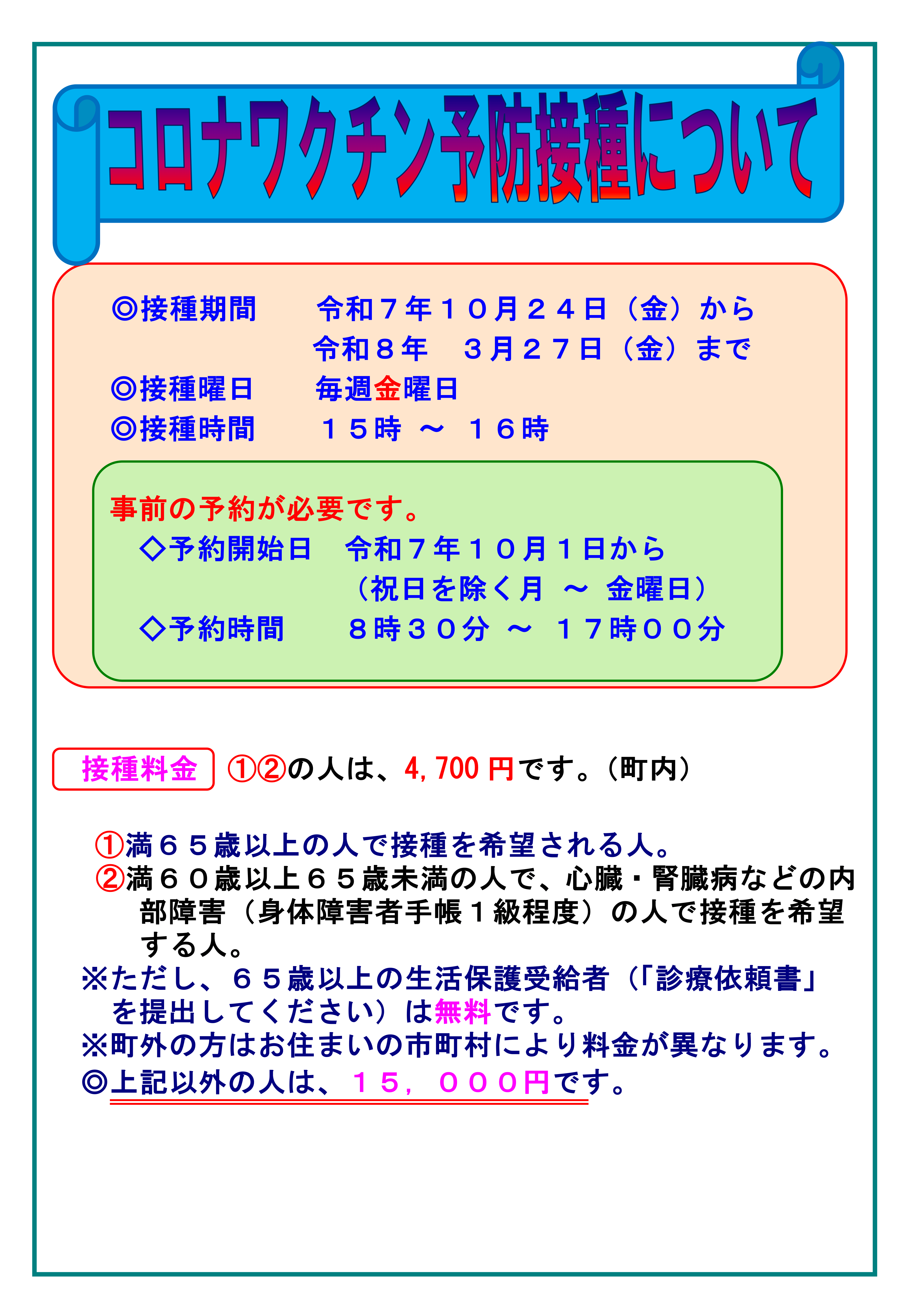 コロナワクチン予防接種のお知らせ