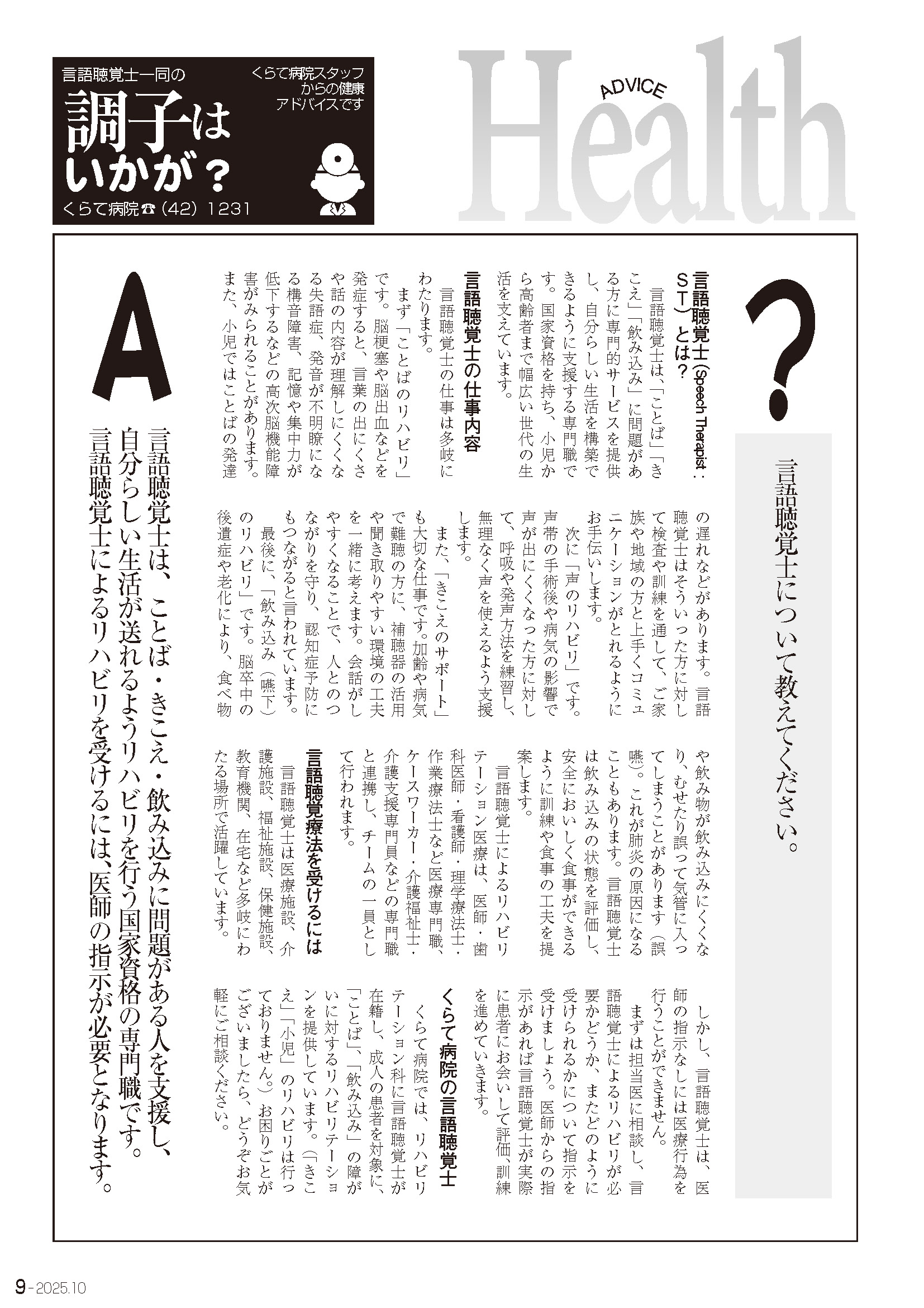 鞍手町の広報紙『広報くらて』に掲載しております、連載『調子はいかが?』の記事をPDF形式でご覧いただけます。